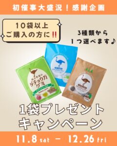 期間中に 10袋以上 ご購入いただいたお客様へ、お好きな商品を 1袋プレゼント させていただきます。
